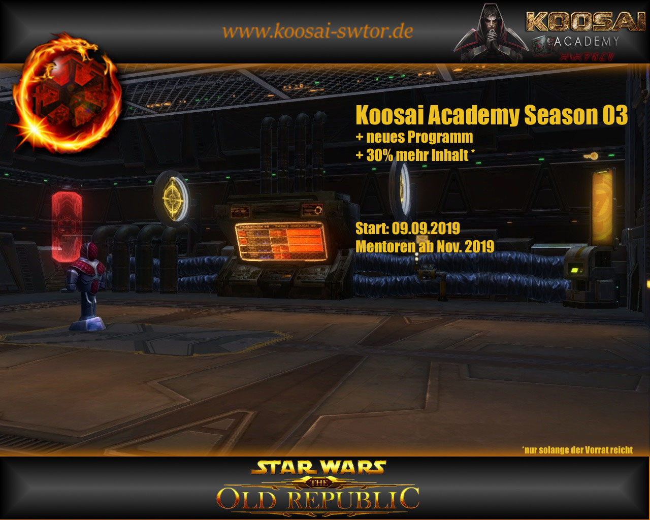 Ab dem 09.Sept. beginnt die dritte Staffel der Koosai Academy mit ersten Raidterminen, Mentorengespräche folgen im November. Nähere Informationen zum geänderten Programm, Schwerpunkten und Ideen für die dritte Staffel folgen in Kürze im Forum.Wir freuen uns auf Eure rege Teilnahme und laden alle herzlich ein, mal einen Blick zu riskieren.